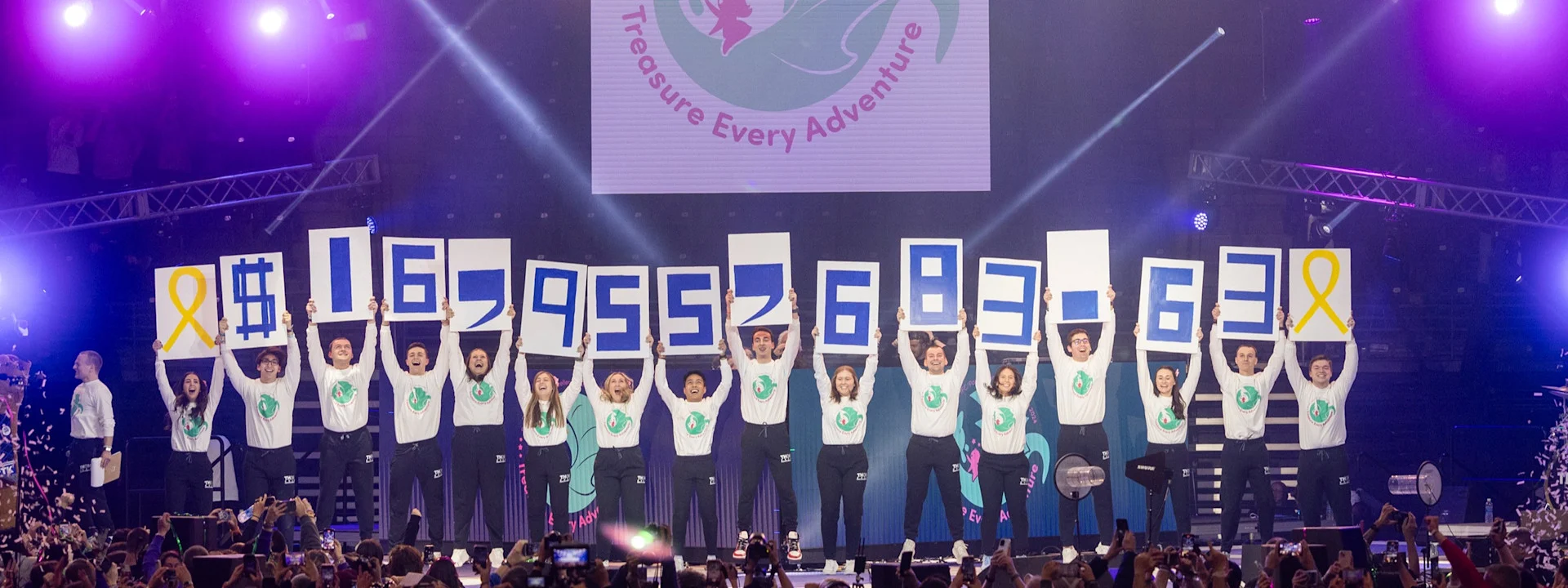 Penn State's THON is a dynamic student-run philanthropy dedicated to combating childhood cancer. It brings together thousands of students annually to participate in a spirited 46-hour dance marathon, where participants remain standing and awake to raise awareness and funds to support children and families affected by cancer.